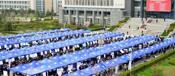 3月24日,我校2017屆畢業(yè)生第三場(chǎng)綜合招聘會(huì)在新校區(qū)圖書(shū)館南廣場(chǎng)舉行。中化近代環(huán)?;ぃㄎ靼玻┯邢薰尽⒈狈剿箓愗愔x油田技術(shù)(西安)有限公司等270余家單位、600余名代表參會(huì),我校及兄弟院校畢業(yè)生共4000余人參加了招聘活動(dòng)。