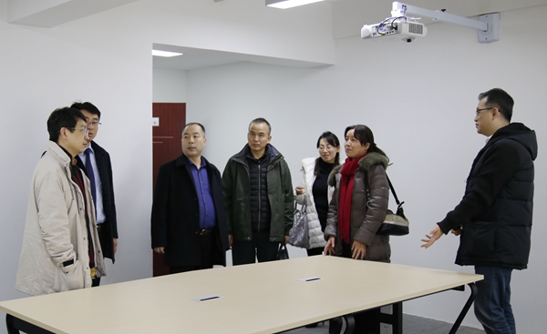 陳軍斌副校長(zhǎng)陪同專家組考察教學(xué)設(shè)施