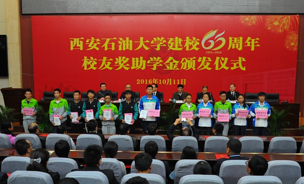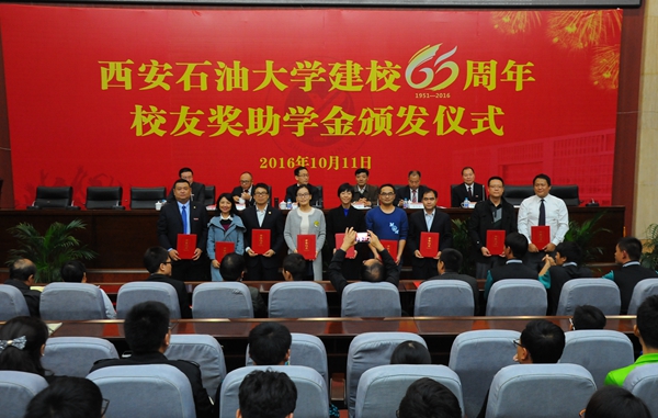 齊仲鋒副處長還宣讀了《西安石油大學2016年弘石基金表彰決定》;騰輝捐資人、機械工程學院院長竇益華教授宣讀了《2016年騰輝助學金受助學生名單》。