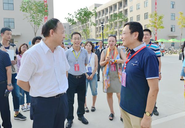 屈展校長(zhǎng)(中)一行檢查指導(dǎo)迎新工作