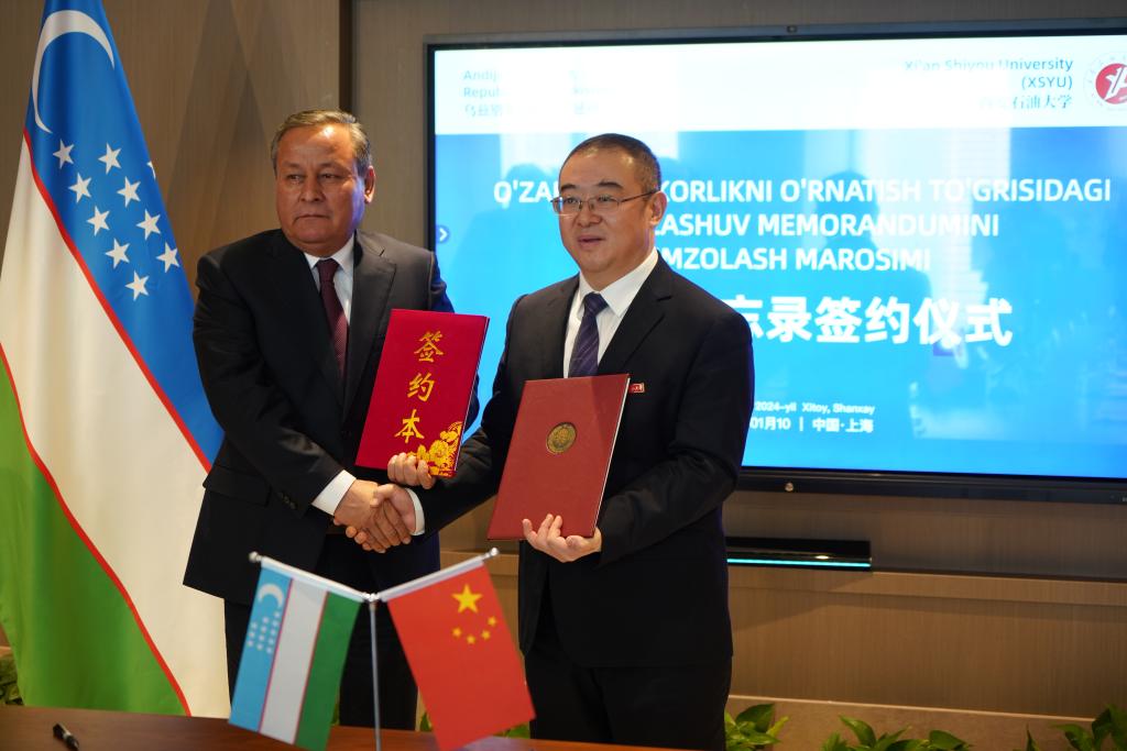 1月10日下午,校黨委書(shū)記常江在上海與來(lái)華訪(fǎng)問(wèn)的烏茲別克斯坦安集延州州長(zhǎng)阿卜杜拉赫馬諾夫·舒赫拉特貝克·科沙克博耶維奇(Abdurahmanov Shuhratbek Koshaqboevich)一行會(huì)見(jiàn),并簽署合作備忘錄。烏茲別克斯坦安集延州州政府、波士頓區(qū)政府、烏茲別克斯坦駐華大使館投資工業(yè)與貿(mào)易部、商務(wù)參贊等烏方官員,以及我校國(guó)際交流與合作處、石油工程學(xué)院、地球科學(xué)與工程學(xué)院、化學(xué)化工學(xué)院、經(jīng)濟(jì)管理學(xué)院、國(guó)際教育學(xué)院等部門(mén)和學(xué)院負(fù)責(zé)人參加會(huì)見(jiàn)。