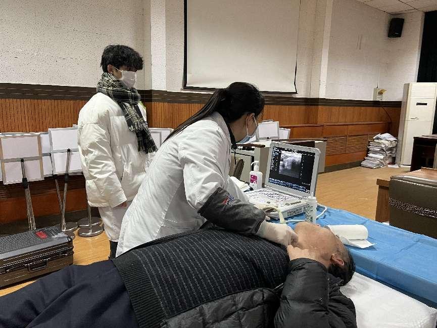 義診團隊現(xiàn)場為前來咨詢的人員進行彩超檢查、測量血壓、血糖,并根據(jù)檢查情況有針對性地進行常見病、慢性病的疾病知識科普,解疑答惑,叮囑飲食和用藥注意事項,分享中醫(yī)養(yǎng)生、專業(yè)體檢方法及合理膳食、運動等方面的知識,鼓勵大家積極鍛煉,保持樂觀情緒,養(yǎng)成健康的生活方式。