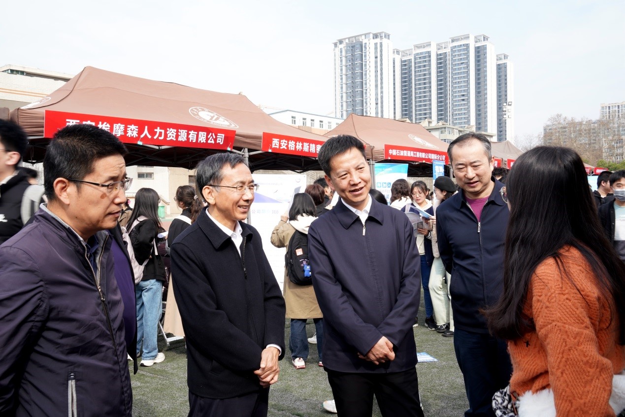 3月15日,由陜西省教育廳主辦,陜西省學(xué)生就業(yè)與留學(xué)服務(wù)中心和西安石油大學(xué)承辦的陜西省2024屆普通高校能源化工類畢業(yè)生春季聯(lián)盟招聘會在我校雁塔校區(qū)成功舉辦。省委教育工委委員、省教育廳副廳長申雪峰一行來校指導(dǎo)考察招聘工作。會前,申雪峰副廳長與我校黨委書記常江、黨委副書記張木就2024屆畢業(yè)生就業(yè)工作開展座談交流。陜西省學(xué)生就業(yè)與留學(xué)服務(wù)中心、省教育廳學(xué)生處有關(guān)負(fù)責(zé)同志陪同考察。