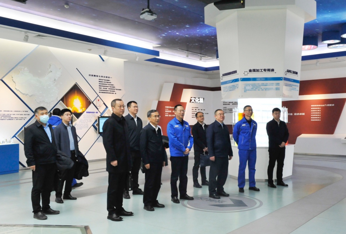 18日上午,常江、王進富一行來到中石油克拉瑪依石化有限公司走訪交流,該公司黨委書記、董事長何軍,副總經理鄺煜,企業(yè)首席專家甄新平陪同參觀考察和座談交流。中石油克拉瑪依石化有限公司始建于1959年,是國內最大的環(huán)烷基潤滑油生產基地,也是中國石油最重要的高檔潤滑油、環(huán)烷基特種油、瀝青生產基地。常江、王進富一行認真巡看展墻上的內容和照片,對公司建設伊始迎著困難生產“爭氣油”,“三缸一棒”搞科研,并最終建成戈壁明珠表示欽佩。中石油克拉瑪依石化有限公司目前擁有潤滑油產量、國內稠油加工技術、光亮油質量和產量等七項全國第一,并榮獲1項國家科技進步一等獎。