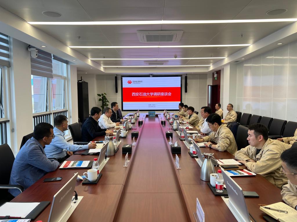 當(dāng)天下午,常江、王進(jìn)富一行來到神木市,調(diào)研參觀國家能源集團錦界能源有限責(zé)任公司。公司總經(jīng)理、黨委副書記陳兵,副總經(jīng)理魯鵬飛、黃艷陪同參觀了公司中央控制樓科技展廳、“八機一控”控制室和CCUS示范項目現(xiàn)場,隨后雙方在科展樓會議室召開座談會。常江表示,校企雙方均承擔(dān)著保障國家能源安全的重要使命,學(xué)校成立碳中和未來技術(shù)研究院、新能源學(xué)院,致力于碳中和領(lǐng)域的未來技術(shù)研究與人才培養(yǎng),希望雙方深入推進(jìn)產(chǎn)教融合、校企融合,在CCUS領(lǐng)域深入合作,為國家能源戰(zhàn)略和雙碳目標(biāo)作出積極貢獻(xiàn)。王進(jìn)富談到,學(xué)校與國能錦界公司在能源領(lǐng)域有著廣泛的合作基礎(chǔ),雙方在勘探、開采、煉化、儲運等關(guān)鍵共性技術(shù)領(lǐng)域具有廣闊的合作空間,要發(fā)揮好高校在基礎(chǔ)研究和人才儲備方面的作用,運用好企業(yè)在科技創(chuàng)新和生產(chǎn)經(jīng)營方面的經(jīng)驗,優(yōu)勢互補,共同推動能源領(lǐng)域的科技創(chuàng)新和人才培養(yǎng)。陳兵表示,校企合作是推動科技創(chuàng)新的重要途徑,西安石油大學(xué)是國家石油石化領(lǐng)域的“獨角獸大學(xué)”,優(yōu)勢特色明顯,學(xué)校在CCUS領(lǐng)域的科研與工程實踐,為企業(yè)帶來了“及時雨”,希望雙方在科研合作、人才培養(yǎng)和引進(jìn)等方面加強合作,推動雙方獲得更多發(fā)展機遇,享受更多發(fā)展成果。公司副總經(jīng)理黃艷、CCUS研究中心有關(guān)負(fù)責(zé)同志和我??萍继庁?fù)責(zé)同志分別介紹了公司發(fā)展情況和學(xué)??蒲星闆r。