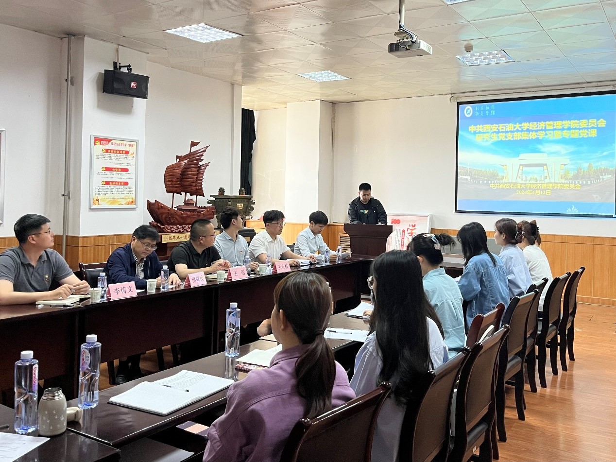 4月12日,經(jīng)濟(jì)管理學(xué)院2022級(jí)學(xué)碩黨支部在雁塔校區(qū)東方石油樓1507會(huì)議室召開支部黨員大會(huì),總會(huì)計(jì)師樊曉民以普通黨員身份參加支部學(xué)習(xí),與支部黨員同志一起交流,并講授專題黨課。