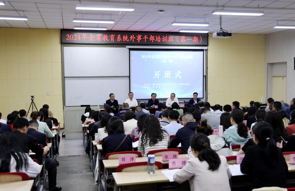 4月29日,2024年全省教育系統(tǒng)外事干部培訓(xùn)班開班儀式在我校明德校區(qū)明德樓106教室舉行。陜西省委教育工委副書記王海波,我校黨委書記常江、副校長張榮軍,以及陜西教育干部培訓(xùn)中心主任李國良出席開班儀式。陜西省教育廳對外合作與交流處處長文通主持開班儀式。