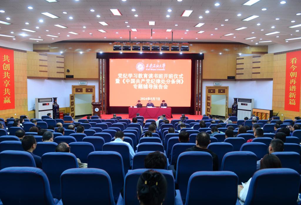 常江在講話中指出,黨的十八大以來,以習近平同志為核心的黨中央把黨的紀律建設擺在全面從嚴治黨突出位置,不斷嚴明政治紀律和政治規(guī)矩。黨的二十大對全面加強黨的紀律建設作出戰(zhàn)略部署。黨中央著眼解決大黨獨有難題、健全全面從嚴治黨體系,2023年對《中國共產黨紀律處分條例》作了最新修訂,將習近平總書記相關重要論述轉化為紀律要求,用黨的創(chuàng)新理論的立場觀點方法引領紀律建設工作,為一刻不停推進全面從嚴治黨提供了堅強紀律保障。今年3月,中共中央辦公廳印發(fā)《關于在全黨開展黨紀學習教育的通知》。4月份,中央黨的建設工作領導小組召開會議,學習貫徹習近平總書記關于黨紀學習教育的重要講話和重要指示精神,研究部署黨紀學習教育工作。同月,陜西省委召開常委會會議暨黨的建設工作領導小組會議,研究陜西省貫徹落實措施。學校黨委高度重視開展黨紀學習教育工作,第一時間傳達學習、研究部署、作出安排。4月15日,學校召開黨委擴大會暨黨紀學習教育動員部署會,傳達學習中央和陜西省委研究部署黨紀學習教育工作會議有關精神,研究審定《中共西安石油大學委員會關于在全校開展黨紀學習教育的實施方案》,就學校開展黨紀學習教育作出部署安排。會后全校各基層黨委通過召開黨委會會議等形式,全覆蓋完成啟動部署,推動黨紀學習教育走深走實。