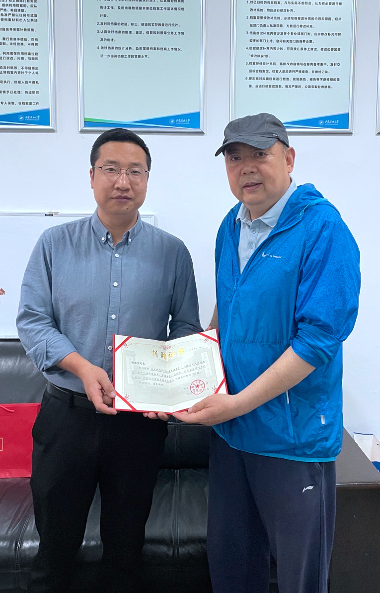 原西安石油學(xué)校黨委書記、校長,西安石油學(xué)院副書記、副院長馬文家屬向檔案館捐贈(zèng)實(shí)物檔案