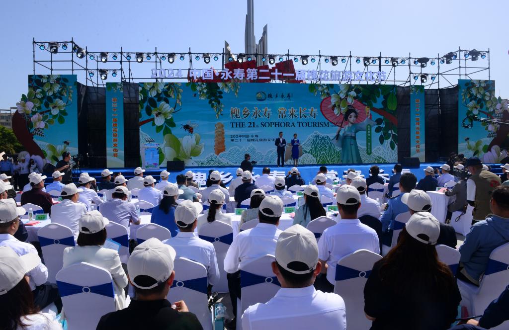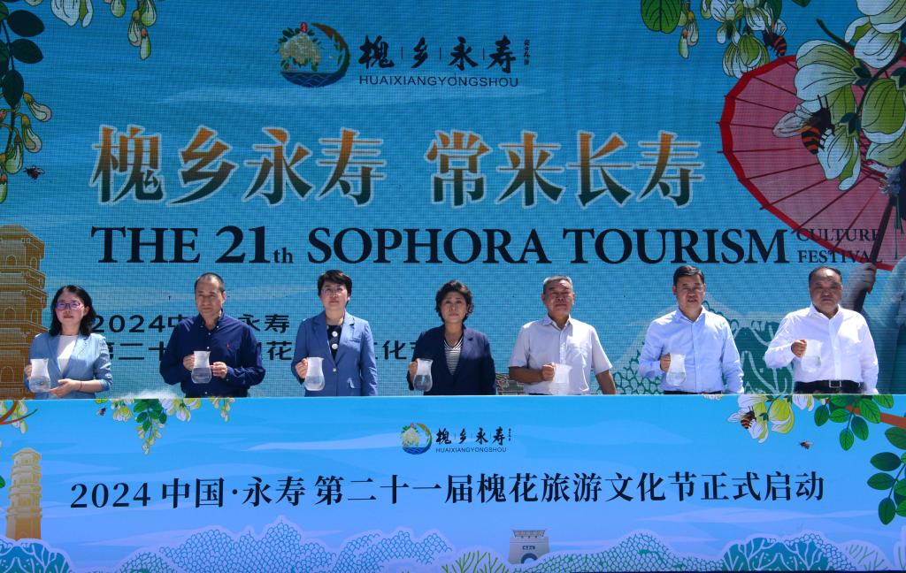 王進(jìn)富一行首先到達(dá)永壽廣場(chǎng)出席槐花旅游文化節(jié)開(kāi)幕式,并受邀上臺(tái)進(jìn)行了儀式啟動(dòng)。