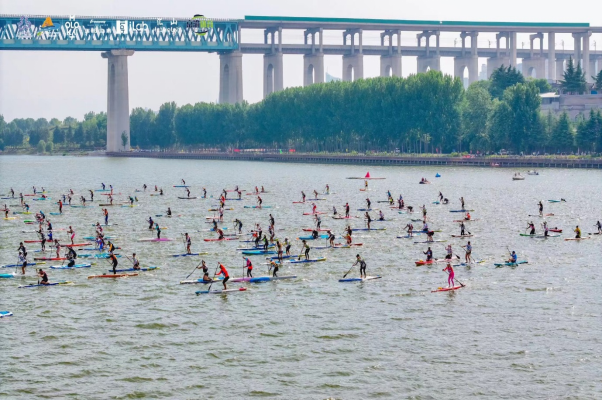 據(jù)悉,本次賽事在黃河陜州區(qū)段水域舉行,由國家體育總局水上運動管理中心、河南省體育局、省體育總會、三門峽市人民政府主辦,三門峽市體育局和陜州區(qū)政府承辦,設置了公開組、大師組、卡胡納組、高校組及青少年組等多個組別。競賽涵蓋男女個人賽、個人200米競速賽、200米趴板劃水賽、8公里比賽以及團體200米接力、200米龍板賽等多個項目,為槳板愛好者提供擊水黃河、浪遏飛板的平臺。共有來自全國各地的700名槳板賽選手和體育運動愛好者相聚碧水黃河,共同體驗沿黃生態(tài)與水上運動的激情碰撞,感受“黃河明珠、天鵝之城”與“體育強國、健康中國”的激昂融合。