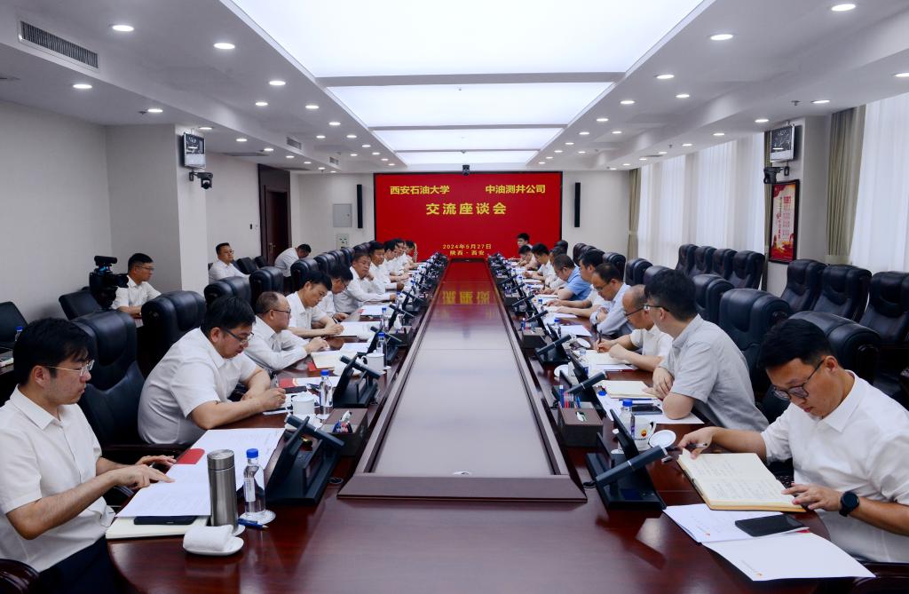 隨后,雙方在公司科研綜合樓會(huì)議室舉行交流座談會(huì)。常江指出,西安石油大學(xué)和中油測井公司同根同源,雙方長期以來堅(jiān)持服務(wù)國家能源戰(zhàn)略,在各自行業(yè)矢志奮斗,公司發(fā)展成效顯著,感到由衷欽佩。常江向中油測井公司對(duì)學(xué)校的關(guān)懷、關(guān)注和支持表示衷心的感謝,簡要介紹了學(xué)校第三次黨代會(huì)有關(guān)情況以及今后一個(gè)時(shí)期學(xué)校主要工作任務(wù)。他談到,雙方合作在能源行業(yè)校企合作中具有示范意義,既要關(guān)注常規(guī),深化校企科學(xué)研究,加大科技成果轉(zhuǎn)化力度;也要關(guān)注超常規(guī),以學(xué)校碳中和未來技術(shù)研究院等實(shí)體研究院建設(shè)為契機(jī),加大人才聯(lián)合培養(yǎng)深度和廣度,推進(jìn)高層次人才校聘企用工作。雙方合作在科教融合、產(chǎn)教融匯方面具有廣闊空間,既要全面深入,整合現(xiàn)有科研力量加強(qiáng)有組織科研;也要高度融合,實(shí)現(xiàn)平臺(tái)互相開放、資源共建共享、黨建聯(lián)建共建。常江表示,希望雙方將合作再深入、再提級(jí),協(xié)同提升油氣測井行業(yè)人才培養(yǎng)質(zhì)量,共同提高油氣服務(wù)、鉆探保障中難題攻關(guān)能力,助力企業(yè)早日建成世界一流測井公司,期待雙方在保障國家能源安全中持續(xù)作出更大貢獻(xiàn)。