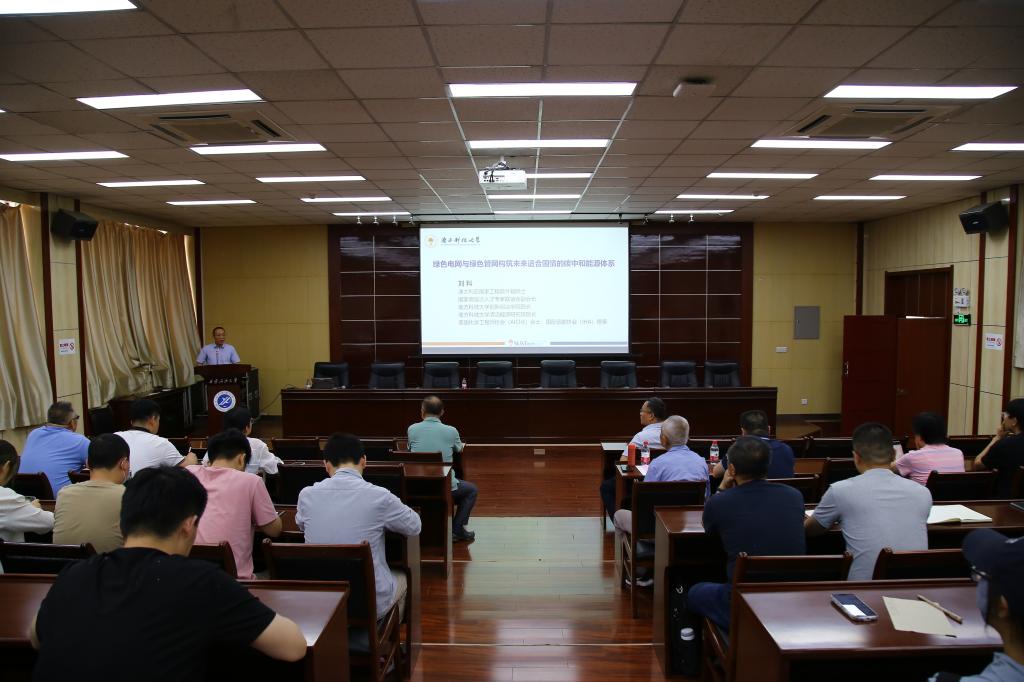 劉科院士在學(xué)校雁塔校區(qū)第五會議室作《綠色電網(wǎng)與綠色管網(wǎng)構(gòu)筑未來碳中和能源體系》的學(xué)術(shù)報告。副校長張君濤主持報告會。我校120余名師生代表參加報告會。