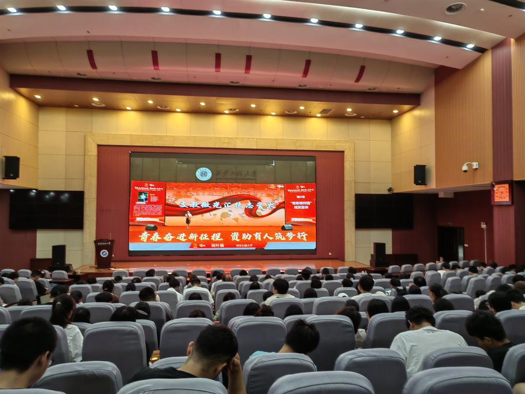 我校黨委副書記張木帶隊(duì)赴西安工程大學(xué)臨潼校區(qū)參加主會(huì)場活動(dòng),學(xué)生工作部(處)副部(處)長畢軼慧,財(cái)務(wù)處副處長秦秋菊等人員陪同。我校在雁塔校區(qū)第五會(huì)議室和鄠邑校區(qū)弘石學(xué)術(shù)報(bào)告廳設(shè)立了分會(huì)場,宣傳部部長趙承勝、研究生工作部部長李強(qiáng)及財(cái)務(wù)處、研究生工作部、學(xué)生資助管理中心的老師參加了分會(huì)場的活動(dòng),共計(jì)550余名學(xué)生在分會(huì)場觀看了現(xiàn)場直播。