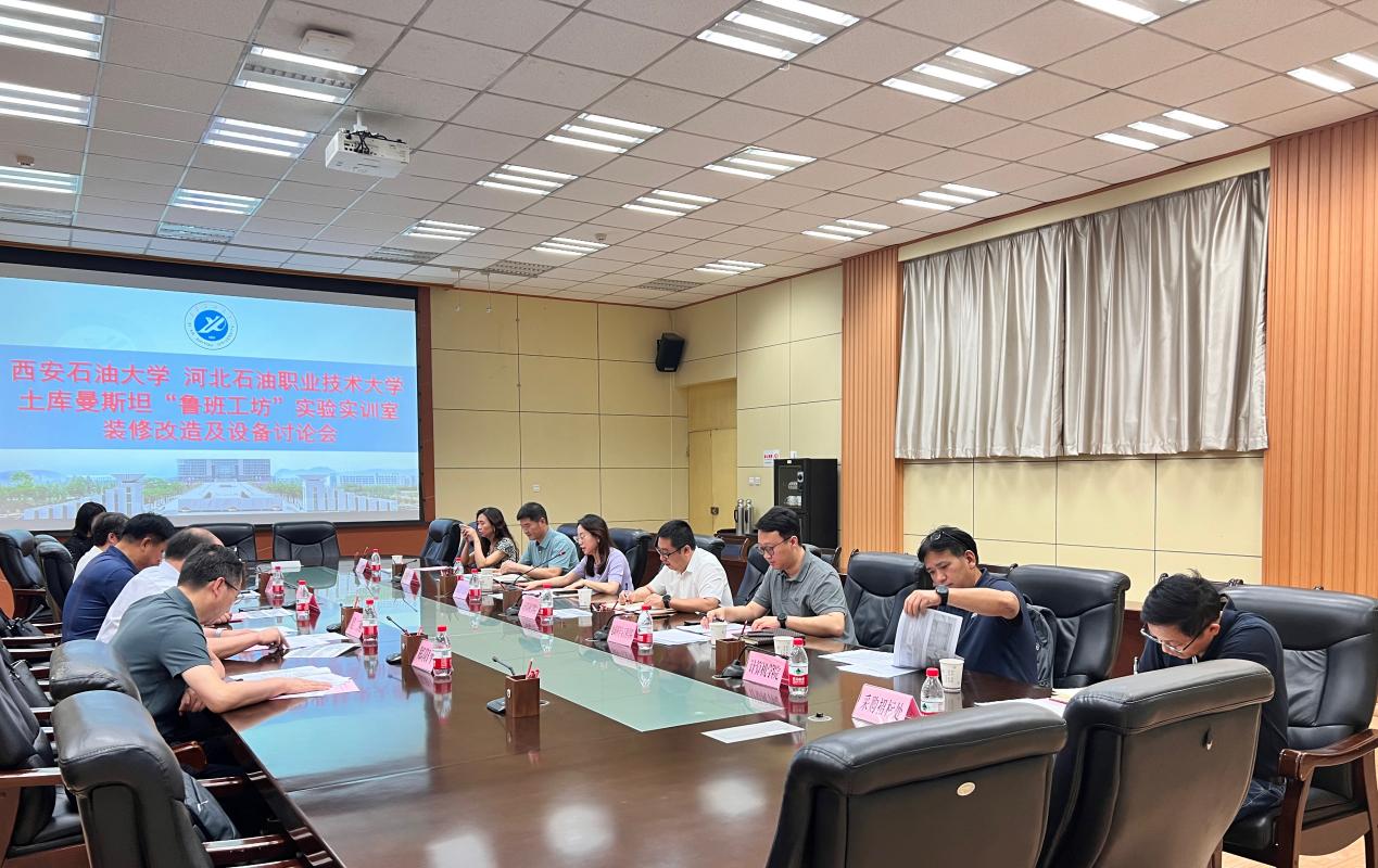 6月14日上午,我校在雁塔校區(qū)會(huì)議中心第一會(huì)議室舉行土庫(kù)曼斯坦“魯班工坊”實(shí)驗(yàn)實(shí)訓(xùn)室裝修改造及設(shè)備討論會(huì)。河北石油職業(yè)技術(shù)大學(xué)計(jì)算機(jī)系主任王學(xué)軍、國(guó)際交流中心主任吳二剛、石油工程系主任張紅靜、計(jì)算機(jī)系副主任鄭陽(yáng)平等一行來(lái)校參加會(huì)議。副校長(zhǎng)張榮軍會(huì)見(jiàn)了河北石油職業(yè)技術(shù)大學(xué)來(lái)訪代表。國(guó)際合作與交流處處長(zhǎng)董皓主持討論會(huì),國(guó)有資產(chǎn)處、采購(gòu)招標(biāo)處、地球科學(xué)與工程學(xué)院、計(jì)算機(jī)學(xué)院相關(guān)負(fù)責(zé)人及工作人員參會(huì)。
