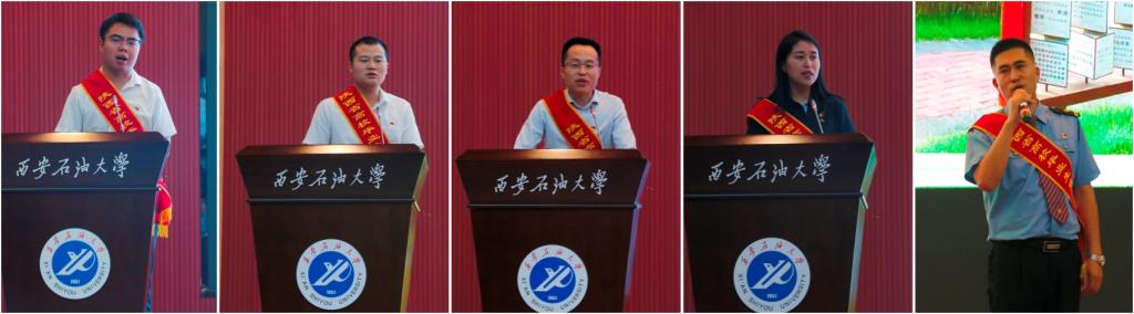 會上,我校石油工程學院2019屆本科畢業(yè)生,新疆維吾爾自治區(qū)庫車市烏尊鎮(zhèn)人民政府四級主任科員張珂;陜西職業(yè)技術學院2019屆畢業(yè)生,陜西省彬州市義門鎮(zhèn)人民政府農業(yè)農村辦主任任文杰;陜西工業(yè)職業(yè)技術學院2014屆畢業(yè)生,西安凌科檢測科技有限公司總經理周春慧;陜西國防工業(yè)職業(yè)技術學院2016屆畢業(yè)生,陜西省咸陽市格林美化工程有限公司設計師劉逍雪;陜西鐵路工程職業(yè)技術學院2015屆畢業(yè)生,中國鐵路西安局集團有限公司寶雞車務段青石崖車站站長張鑫,先后分享了他們各自建功立業(yè)的先進事跡,并對現(xiàn)場同學們在學習、實習、就業(yè)等方面遇到的問題和疑惑進行了交流與解答。