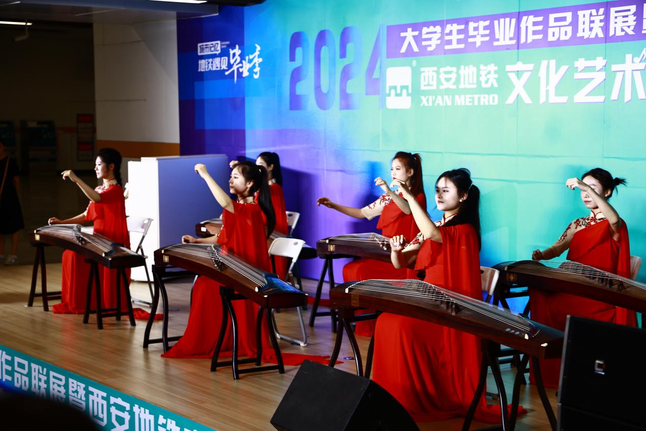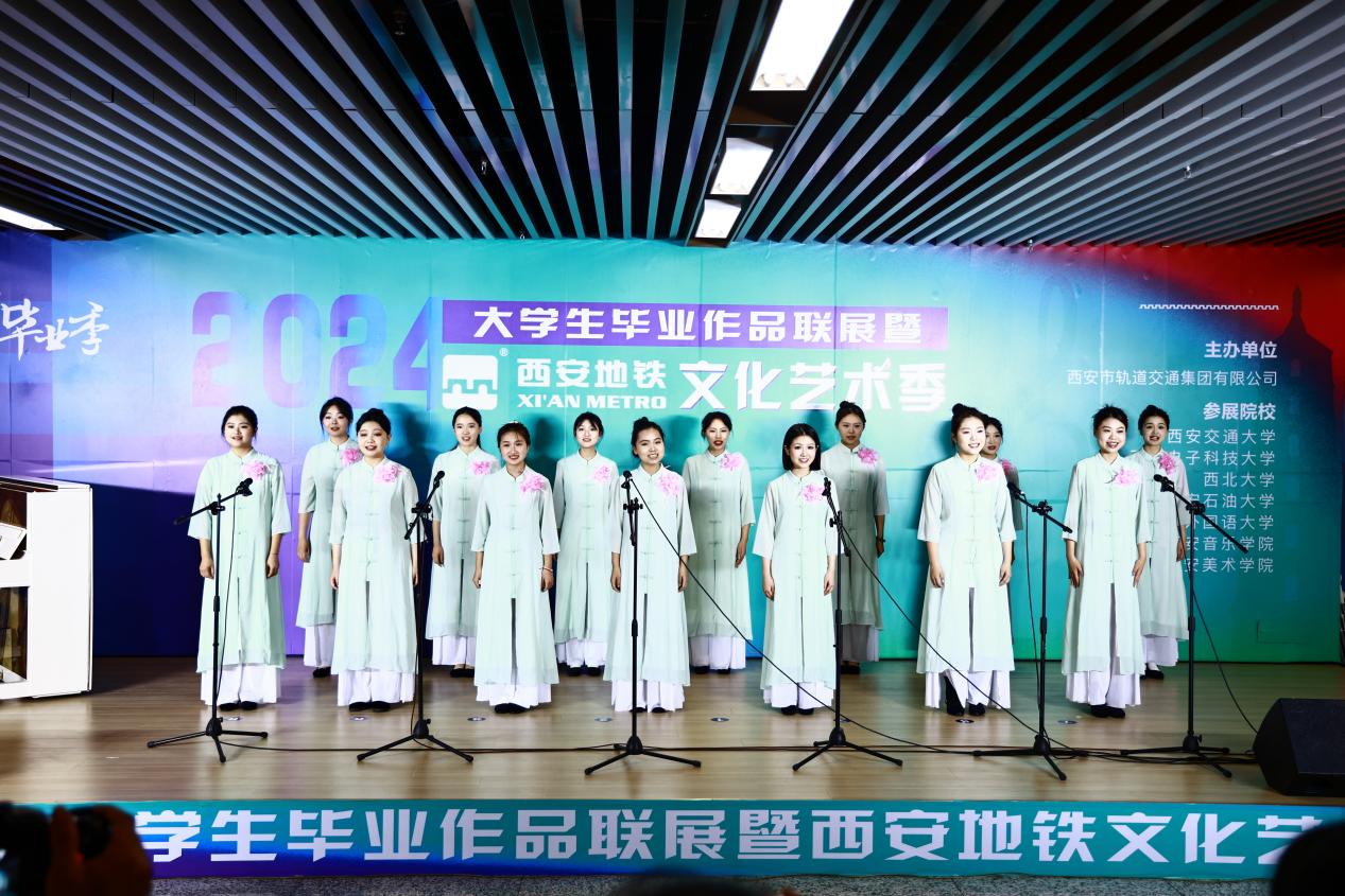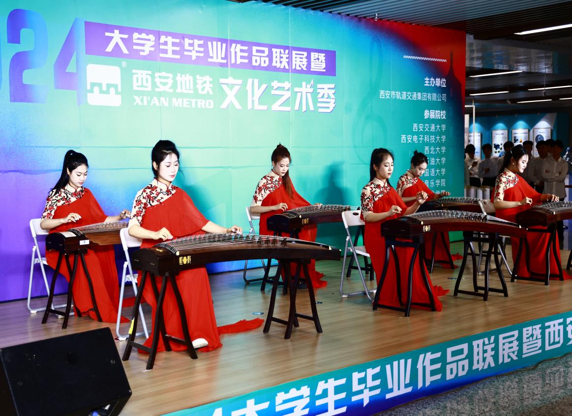 開幕儀式上,來自西安石油大學(xué)、西安音樂學(xué)院的音樂學(xué)子及地鐵青年員工為來往市民帶來了一場別開生面的藝術(shù)展演。演出類型包括民樂演奏、民歌演唱、合唱、相聲等,活動吸引了過往市民游客駐足觀看,現(xiàn)場歡呼聲、掌聲不絕于耳。學(xué)子們用悅耳的古箏齊奏、激昂的民歌和熱情的舞蹈等10余個節(jié)目,表達(dá)了對青春的深刻理解和接續(xù)奮斗的遠(yuǎn)大抱負(fù),讓大家在出行中感受當(dāng)代大學(xué)生積極向上的精神風(fēng)貌和無限活力,體驗屬于西安畢業(yè)季的浪漫。