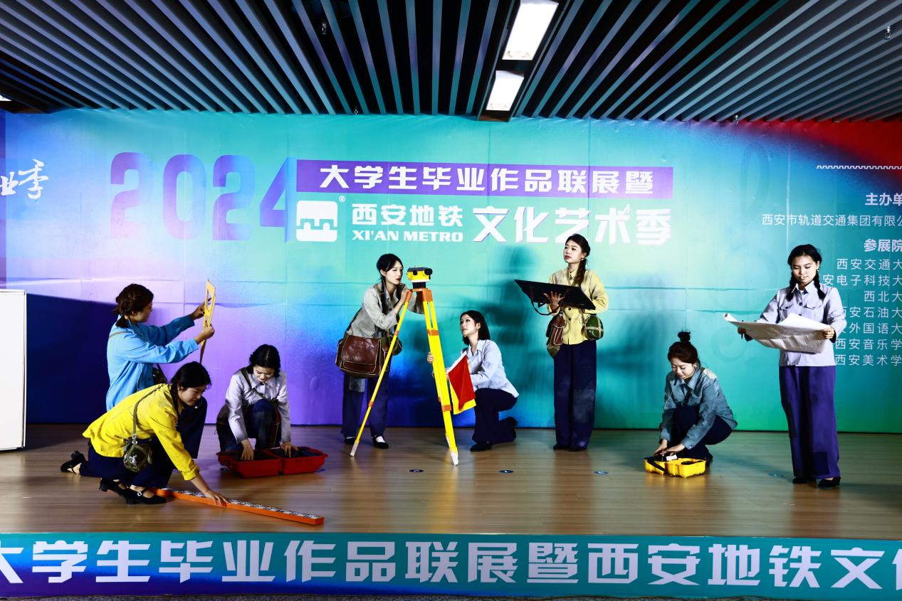 在大學(xué)生畢業(yè)作品展區(qū),由西安交通大學(xué)、西安電子科技大學(xué)、西北大學(xué)、西安石油大學(xué)、西安外國語大學(xué)、西安美術(shù)學(xué)院、西安音樂學(xué)院等高校設(shè)計的140余件(組)優(yōu)秀畢業(yè)作品也在車站同步展出。其中,既包括實體的繪畫作品、雕塑作品、文創(chuàng)作品、文藝展演,也有數(shù)字藝術(shù)、機(jī)器人、無人機(jī)通信技術(shù)等科技作品。大學(xué)生們的優(yōu)秀作品先后在地鐵西安站、行政中心站、鐘樓站三個車站驚艷亮相。