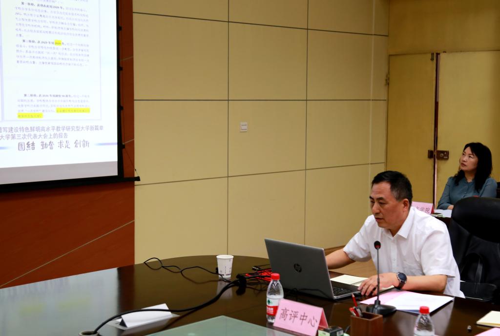 高教研究與評(píng)估督導(dǎo)中心主任傅海威從學(xué)校教育評(píng)價(jià)改革基本概況、教育評(píng)價(jià)改革實(shí)施情況、典型經(jīng)驗(yàn)做法情況、存在問題與政策建議等方面,就我校深化新時(shí)代教育評(píng)價(jià)改革專項(xiàng)工作進(jìn)行了詳細(xì)匯報(bào)。