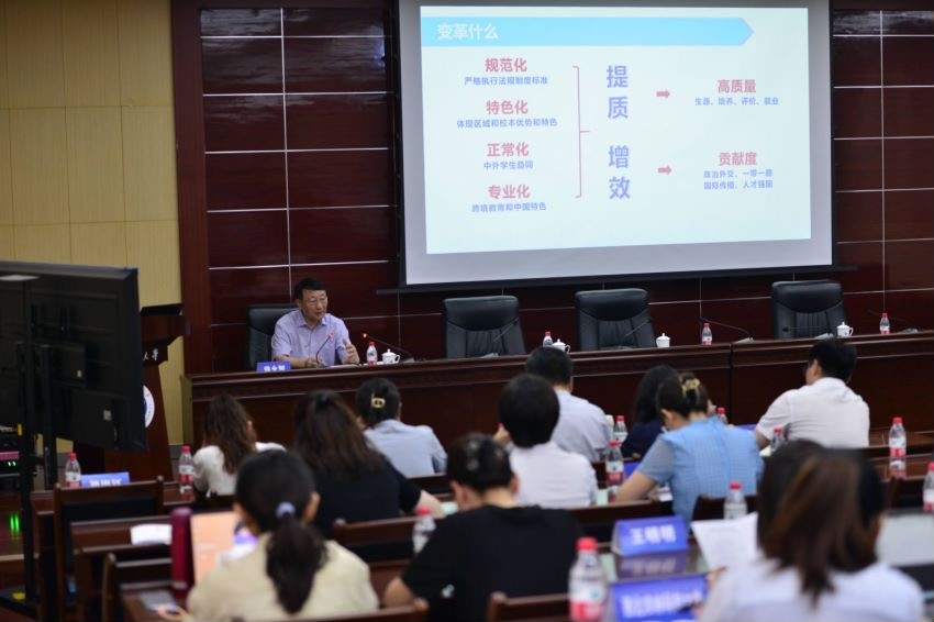 會上,宣布啟動陜西省高校第二屆來華留學生管理干部技能大賽,大賽將分為初賽、決賽兩個階段。2024年7月進行初賽,9月進行決賽。