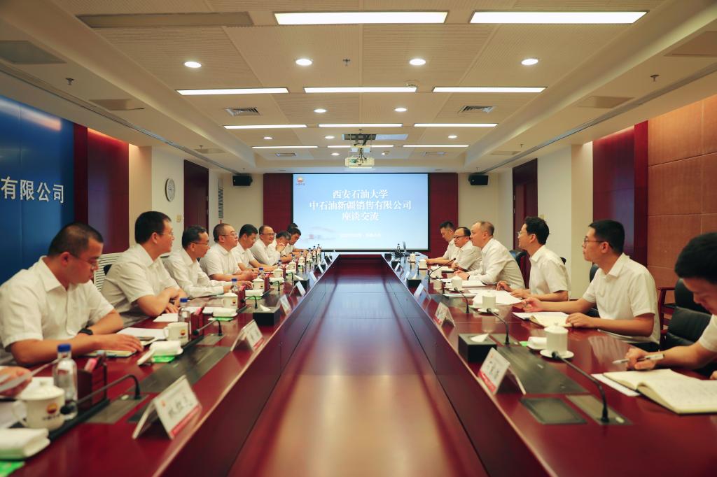 在中國(guó)石油新疆銷(xiāo)售有限公司走訪交流期間,公司黨委副書(shū)記、總經(jīng)理黃劍宇等企業(yè)領(lǐng)導(dǎo)會(huì)見(jiàn)常江、王進(jìn)富一行,并進(jìn)行工作座談。黃劍宇感謝學(xué)校在長(zhǎng)期的合作過(guò)程中,為公司提供了重要的人才、科技支撐。他表示,下一步將圍繞科研攻關(guān)、創(chuàng)新人才培養(yǎng)、推進(jìn)智慧銷(xiāo)售構(gòu)建大營(yíng)銷(xiāo)體系、提升學(xué)歷教育培訓(xùn)等方面,進(jìn)一步增加合作力度、拓展合作廣度、加大合作深度,共同實(shí)現(xiàn)高質(zhì)量發(fā)展。