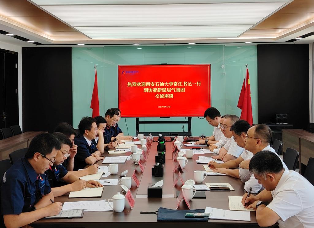 在新疆亞新煤層氣集團(tuán)走訪期間,集團(tuán)黨委書(shū)記、董事長(zhǎng)崔玉淼熱情接待了常江、王進(jìn)富一行。崔玉淼熱烈歡迎學(xué)校領(lǐng)導(dǎo)半年內(nèi)的再次正式來(lái)訪,對(duì)學(xué)校高度重視與亞新煤層氣開(kāi)展校企合作表示高度贊賞和衷心感謝。在座談會(huì)上,雙方圍繞前期在天然氣、煤層氣“雙氣共采”技術(shù)、煤炭地下氣化、導(dǎo)向鉆井工具、壓裂改造技術(shù)、區(qū)域地質(zhì)構(gòu)圖等多個(gè)合作領(lǐng)域的項(xiàng)目進(jìn)展情況進(jìn)行交流和探討,并就雙方共建勘探開(kāi)發(fā)協(xié)同創(chuàng)新研究院,在基礎(chǔ)理論和關(guān)鍵技術(shù)共同研究、共建企校合作團(tuán)隊(duì)、聯(lián)合開(kāi)展重大項(xiàng)目論證、聯(lián)合攻關(guān)重大技術(shù)難題、研發(fā)重大裝備、教師“沉浸式”入企、企業(yè)導(dǎo)師聘任等領(lǐng)域開(kāi)展實(shí)質(zhì)性合作交換了意見(jiàn)和建議。該集團(tuán)黨委委員、副總經(jīng)理韋波,總地質(zhì)師梁則亮,集團(tuán)特級(jí)專家王一兵等企業(yè)領(lǐng)導(dǎo)參加了座談交流。