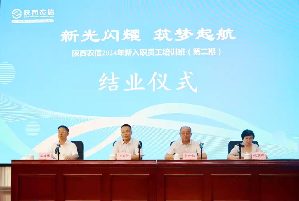 8月29日上午,陜西農(nóng)信“新光閃耀 筑夢起航”2024年新入職員工培訓(第二期)在我校明德校區(qū)報告廳舉行結(jié)業(yè)儀式。陜西省農(nóng)村信用社聯(lián)合社(以下稱“省聯(lián)社”)黨委副書記、主任田亞歐,省聯(lián)社黨委副書記魯怡然出席儀式。省聯(lián)社領(lǐng)導、集訓隊工作人員及全體學員對我校工作人員在培訓期間的精心組織和辛勤付出給予了高度評價。