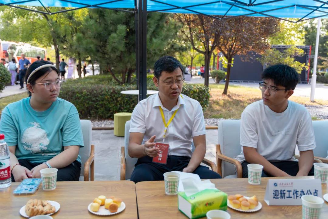 王進(jìn)富與拔尖人才學(xué)生代表在迎新現(xiàn)場進(jìn)行交流座談,他對(duì)同學(xué)們的到來表達(dá)了誠摯的歡迎,并親切詢問了大家的生源信息、所學(xué)專業(yè)和對(duì)未來的規(guī)劃,同時(shí)鼓勵(lì)同學(xué)們砥礪求知,學(xué)有所成。