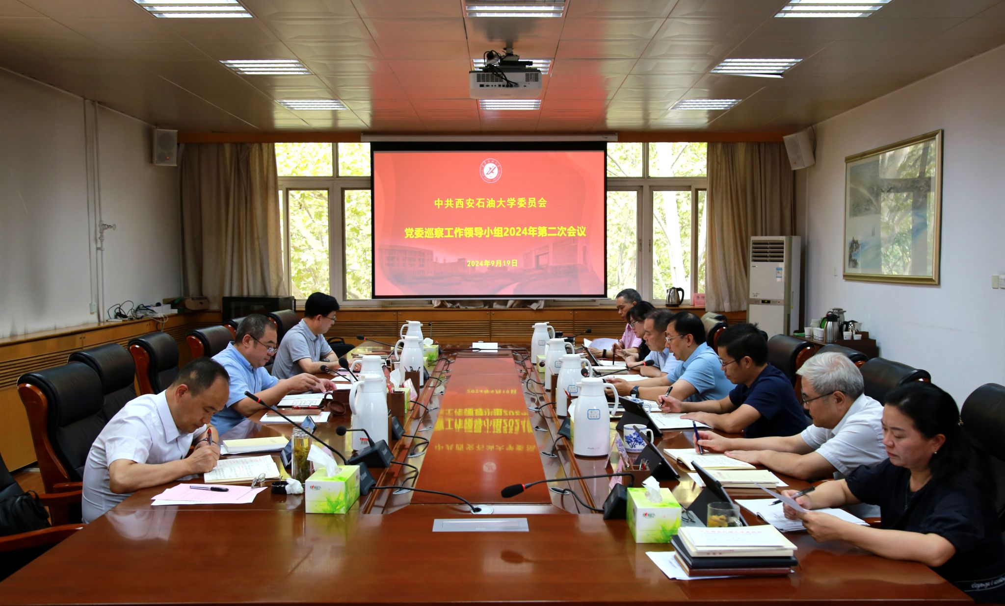 9月19日下午,學(xué)校在雁塔校區(qū)行政樓五樓會議室召開黨委巡察工作領(lǐng)導(dǎo)小組2024年第二次會議,審議《第三屆黨委第一輪巡察工作實施方案》,部署安排有關(guān)工作。校黨政領(lǐng)導(dǎo)常江、王輝強、趙健出席。校黨委巡察工作領(lǐng)導(dǎo)小組成員單位和黨委統(tǒng)戰(zhàn)部、黨委學(xué)生工作部、黨委保衛(wèi)部、研究生工作部主要負責人參加會議。會議由校黨委副書記、紀委書記、監(jiān)察專員、黨委巡察工作領(lǐng)導(dǎo)小組副組長王輝強主持。