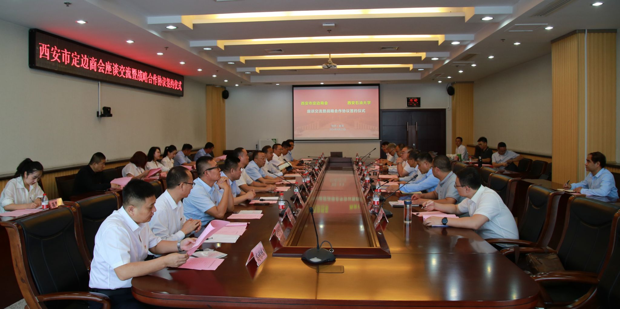 西安市定邊商會(huì)部分理事會(huì)成員單位;我??蒲刑?、校友工作與合作交流處、石油工程學(xué)院、化學(xué)化工學(xué)院負(fù)責(zé)人參加會(huì)議。