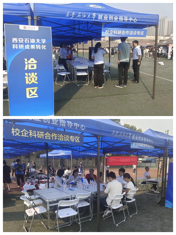 就業(yè)“牽線”,加快科研成果轉(zhuǎn)化。本次招聘會(huì)現(xiàn)場(chǎng)特別設(shè)置了“科研成果轉(zhuǎn)化洽談專區(qū)”,吸引了包括勝利油田工程技術(shù)研究院、山西恒美石油科技工程有限責(zé)任公司技術(shù)負(fù)責(zé)人與我校科技處、石油工程學(xué)院相關(guān)負(fù)責(zé)同志及專家教師開展現(xiàn)場(chǎng)洽談,初步達(dá)成合作意向,助力我校提高科級(jí)成果轉(zhuǎn)化率和產(chǎn)學(xué)研融合水平。近期,我校堅(jiān)持市場(chǎng)導(dǎo)向,“走出去”“引進(jìn)來”相結(jié)合,積極探索,率先實(shí)踐“以就業(yè)為橋梁紐帶”推動(dòng)科技成果轉(zhuǎn)化落地,不僅挖掘了產(chǎn)學(xué)研緊密結(jié)合與充分就業(yè)的轉(zhuǎn)換通道,開拓了高質(zhì)量充分就業(yè)的新渠道,也為校企高質(zhì)量發(fā)展提供了新契機(jī),為校企產(chǎn)學(xué)研互惠共贏打造了新典范。
