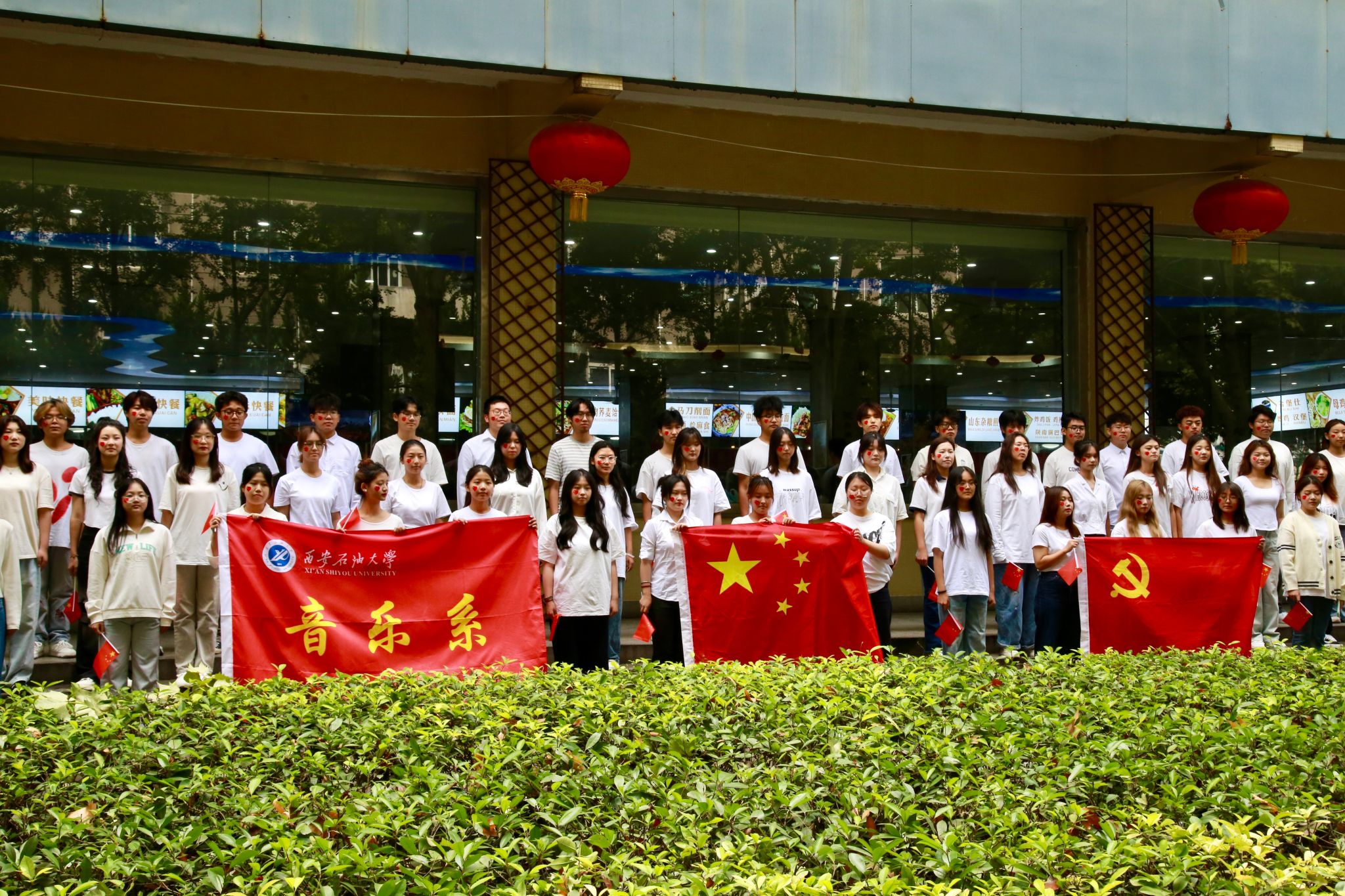 為慶祝中華人民共和國成立75周年,激發(fā)廣大師生的愛國情懷,展現(xiàn)新時代青年的朝氣蓬勃與愛國主義熱情,9月30日中午12點,由音樂系和宣傳部聯(lián)合舉辦的“紅歌快閃”活動在雁塔校區(qū)餐廳前成功舉辦。校黨委委員、副校長趙健,校黨委委員、宣傳部部長趙承勝,國有資產(chǎn)處處長候琦,以及90余名音樂系師生參加了本次“紅歌快閃”活動。該活動由音樂系黨總支策劃,聲樂教研室主任田立指導(dǎo),舞蹈教師何云老師編排,聲樂教師朱玥、馮洋洋領(lǐng)唱。