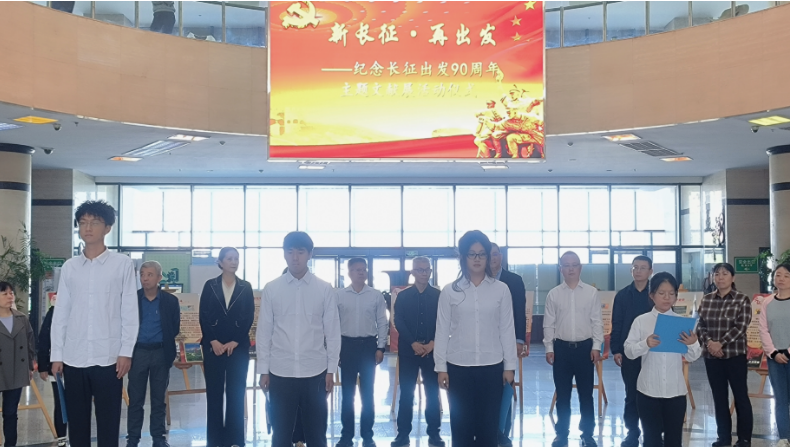 為紀念紅軍長征出發(fā)90周年,引導師生讀者弘揚和繼承長征精神,緬懷革命先輩的豐功偉績,10月9日上午,圖書館、馬克思主義學院、人文學院在鄠邑校區(qū)圖書館聯(lián)合舉辦“新長征·再出發(fā)”紀念長征出發(fā)90周年主題文獻展。副校長張驍勇出席開幕式。相關(guān)部門、學院負責人,圖書館工作人員,馬克思主義學院、人文學院學生代表共計80余人參加活動。
