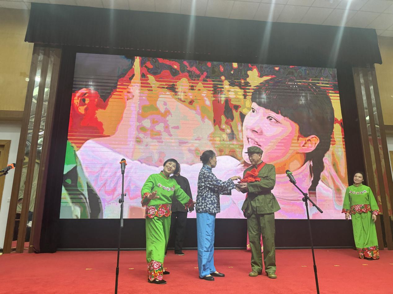 最后,領(lǐng)導(dǎo)和來賓們上臺與演職人員合影留念。大家在一片歡歌笑語聲中共同慶祝新中國成立75周年,歡度重陽節(jié)。
