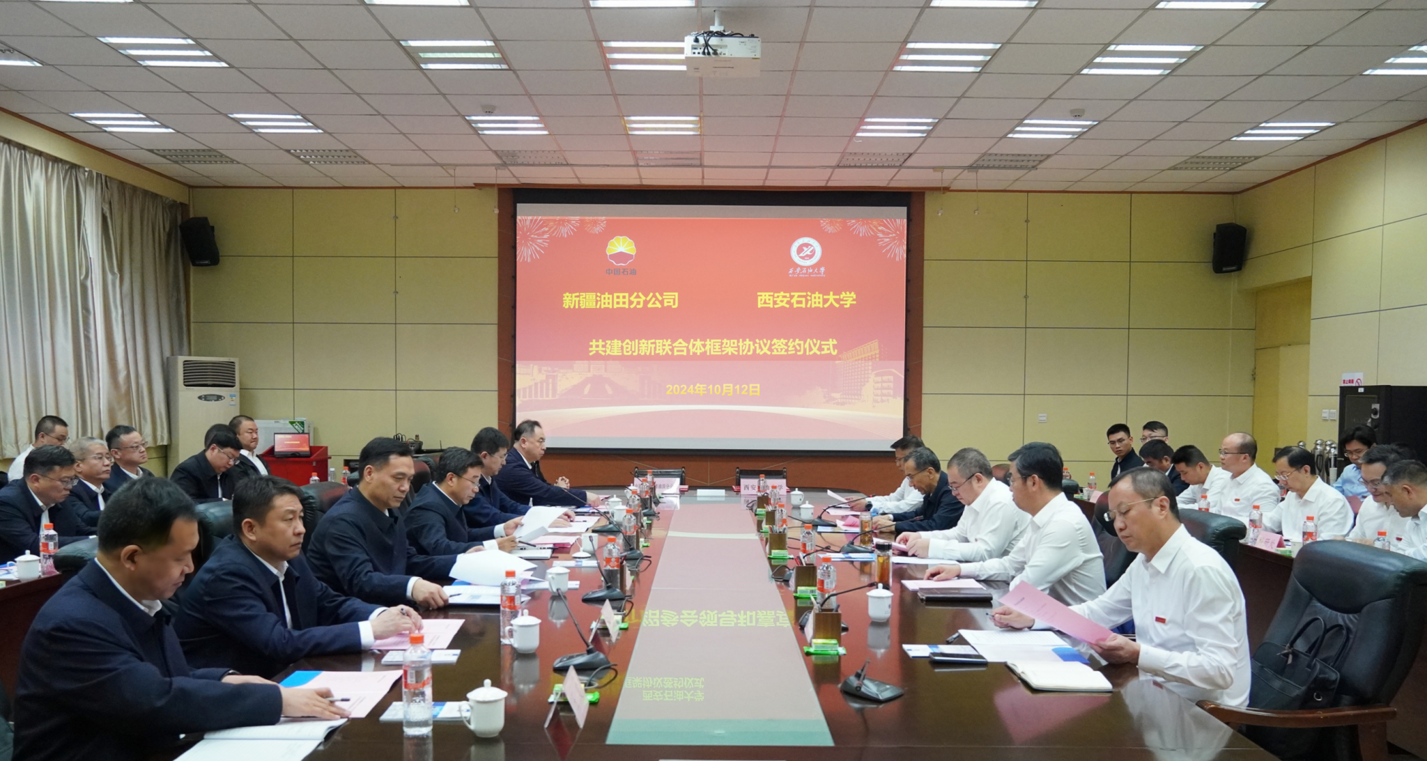 10月12日下午,在我校建校73周年校慶日,學(xué)校與中國石油新疆油田分公司在雁塔校區(qū)會(huì)議中心第一會(huì)議室簽署共建創(chuàng)新聯(lián)合體框架協(xié)議,并舉辦了校企合作技術(shù)交流會(huì)。校黨委書記常江、校長王進(jìn)富、副校長張榮軍、副校長張驍勇,新疆油田分公司黨委副書記、總經(jīng)理魏兆勝,副總經(jīng)理劉洪洲、副總經(jīng)理毛新軍、公司首席企業(yè)專家孫新革出席簽約儀式和技術(shù)交流會(huì),學(xué)校相關(guān)職能部門和院(系)負(fù)責(zé)人、科研團(tuán)隊(duì)代表,新疆油田分公司各相關(guān)職能部門負(fù)責(zé)人和技術(shù)專家參加了活動(dòng)?;顒?dòng)由校黨委副書記張木主持。