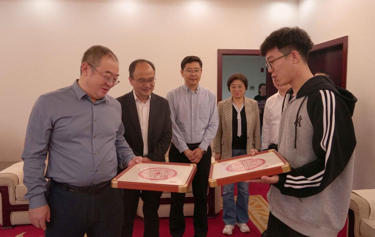 10月11日下午,學(xué)校建校73周年校慶日前夕,石油工程學(xué)院2023級學(xué)生、陜西省非物質(zhì)文化遺產(chǎn)——長安瓦當(dāng)制作技藝繼承人李瑞林同學(xué)向?qū)W校敬贈親手制作的印有“好學(xué)力行,自強不息”校訓(xùn)的瓦當(dāng)拓片。校黨委書記常江、校黨委副書記程永清、副校長趙健在鄠邑校區(qū)圖書館接待室接收贈禮,并與李瑞林同學(xué)親切交流。