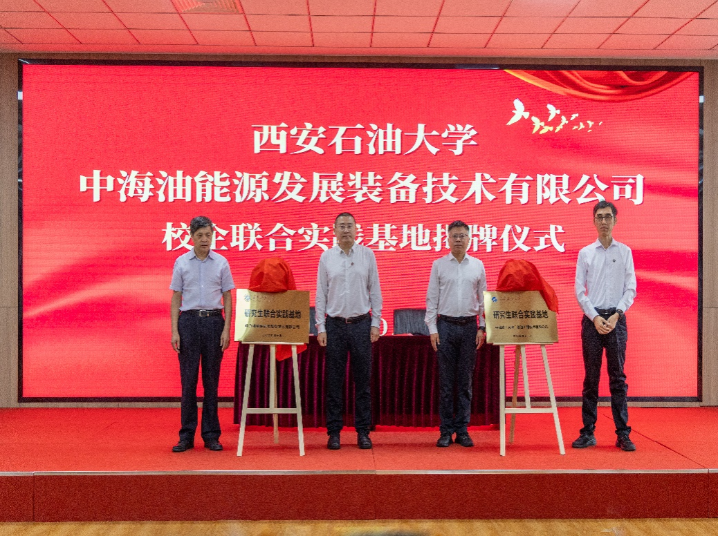 在中海油能源發(fā)展裝備技術(shù)有限公司、管道工程技術(shù)有限公司走訪期間楊戰(zhàn)社、張驍勇參加了研究生聯(lián)合實(shí)踐基地簽約和揭牌儀式。