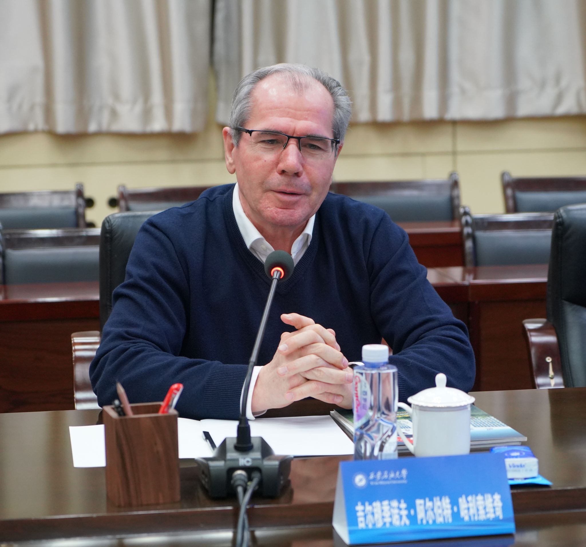 哈利索維奇對學校的熱情接待表示感謝,并對學校國際化辦學成就給予了高度評價。他簡要介紹了韃靼斯坦共和國情況,表示希望積極推動喀山聯(lián)邦大學、喀山技術(shù)大學、喀山石油高等學校等俄羅斯韃靼斯坦共和國高校與西安石油大學在學術(shù)交流、人才培養(yǎng)、科研合作等方面的深入合作。同時,他邀請我校師生前往韃靼斯坦共和國訪問和交流,進一步增進彼此了解和友誼。