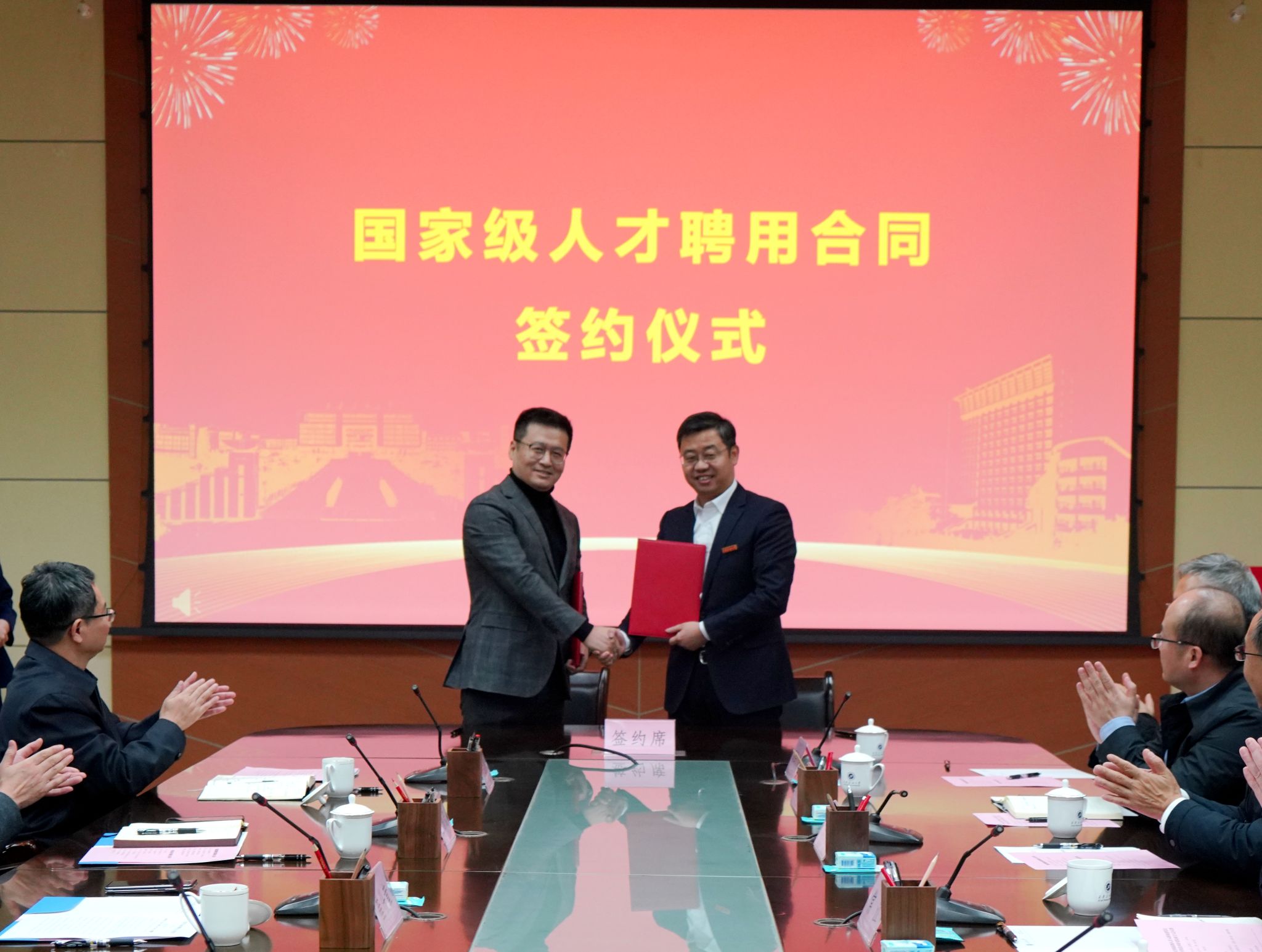 王進富代表學(xué)校與崔仕章教授簽定了聘用合同。