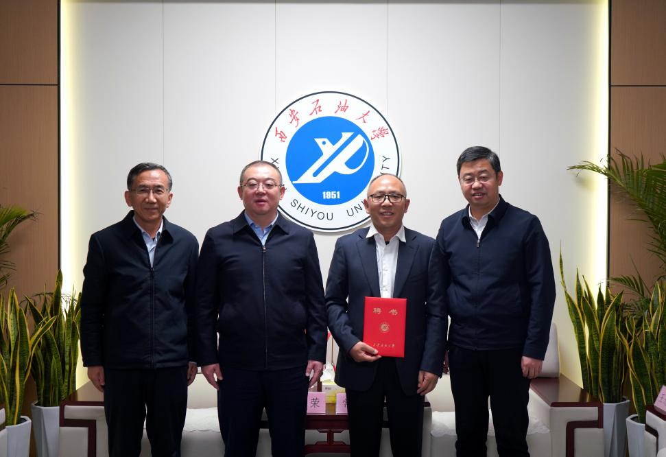儀式結束后,校黨委書記常江、校長王進富、校黨委副書記張木在行政樓會客廳熱情接見了何榮校友一行,并為何榮舉行了一個簡短而莊重的聘任儀式,頒發(fā)了“專業(yè)學位碩士研究生兼職指導教師”的聘書。學校黨委組織部、校友工作與合作交流處、經(jīng)濟管理學院負責人共同見證了這一重要時刻,這不僅是對何榮校友在業(yè)界卓越成就的認可,更是對其深厚學術底蘊和無私奉獻教育事業(yè)的深深敬意。