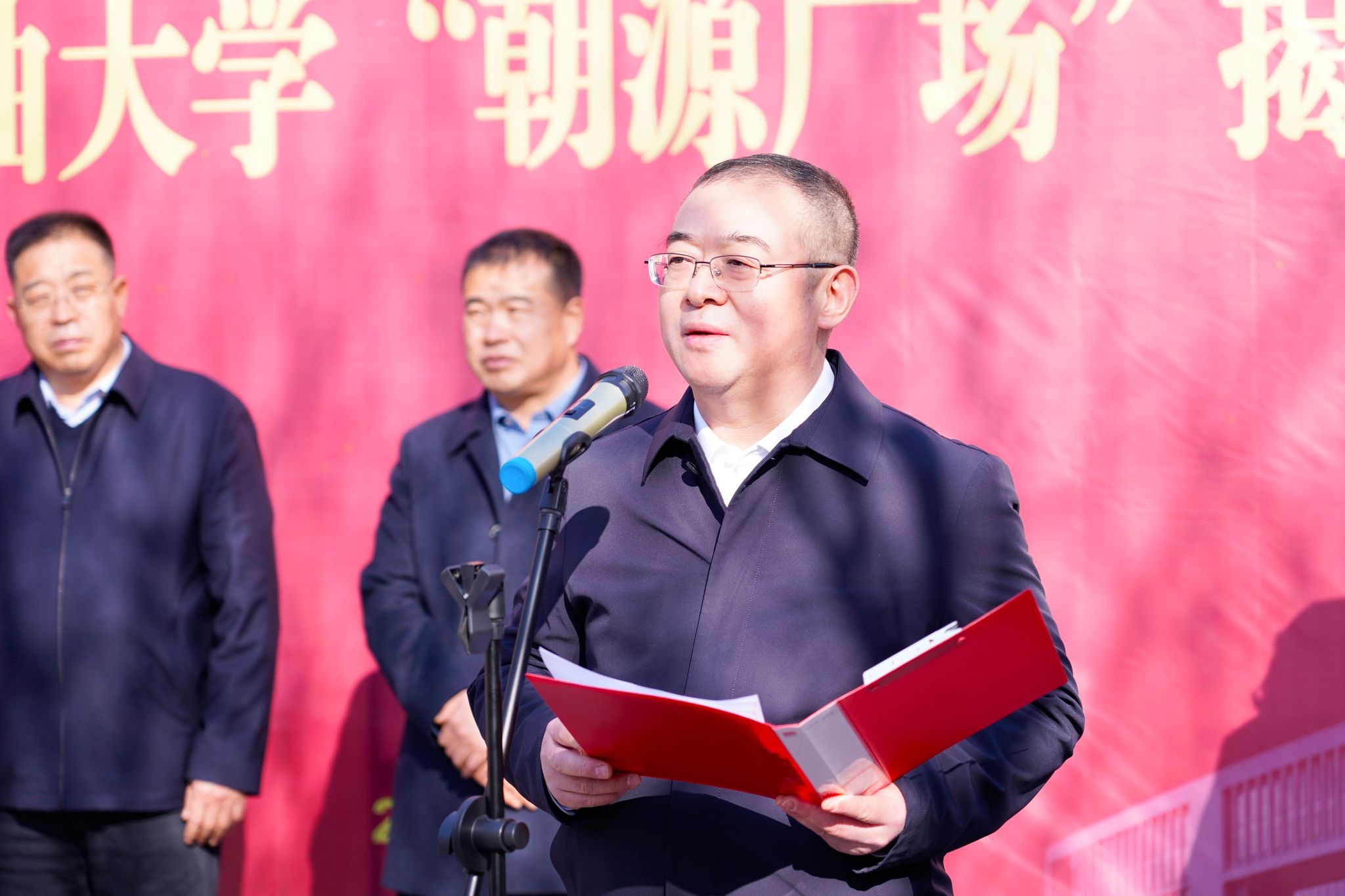 盧宇介紹了公司近年來對(duì)教育事業(yè)的關(guān)注與支持情況。他談到,助力教育是企業(yè)應(yīng)盡的社會(huì)責(zé)任,長(zhǎng)期以來,朝源礦業(yè)在謀求自身發(fā)展的同時(shí),始終牢記企業(yè)的責(zé)任與擔(dān)當(dāng),希望通過捐贈(zèng)幫助學(xué)校改善教學(xué)條件,為師生們創(chuàng)造更加舒適宜人的學(xué)習(xí)與工作環(huán)境,為學(xué)校培育優(yōu)秀人才貢獻(xiàn)一份力量。他表示,期望“朝源廣場(chǎng)”能夠成為雙方友誼與合作的永恒見證,并以此為契機(jī),進(jìn)一步與學(xué)校在實(shí)踐基地建設(shè)、科技成果轉(zhuǎn)化等方面開展更多深度合作,實(shí)現(xiàn)企業(yè)與學(xué)校的互利共贏、協(xié)同發(fā)展。