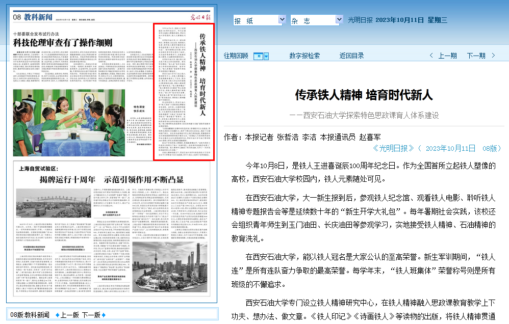 12月27日,以“推進(jìn)教育科技人才一體發(fā)展加快建設(shè)教育強(qiáng)國”為主題的人民網(wǎng)2024大學(xué)校長論壇在人民日報社新媒體大廈舉行。論壇上,人民網(wǎng)2024年高校優(yōu)秀校園新聞作品正式公布,我校黨委宣傳部選送的《傳承鐵人精神 培育時代新人》入選文字類優(yōu)秀作品,全國高校共有16篇作品入選文字類優(yōu)秀作品。本次推薦活動共收到600余篇參選作品,經(jīng)評審,共評選出文字類16篇、圖片類8篇、紀(jì)錄片類11篇、融合報道類優(yōu)秀作品15篇。