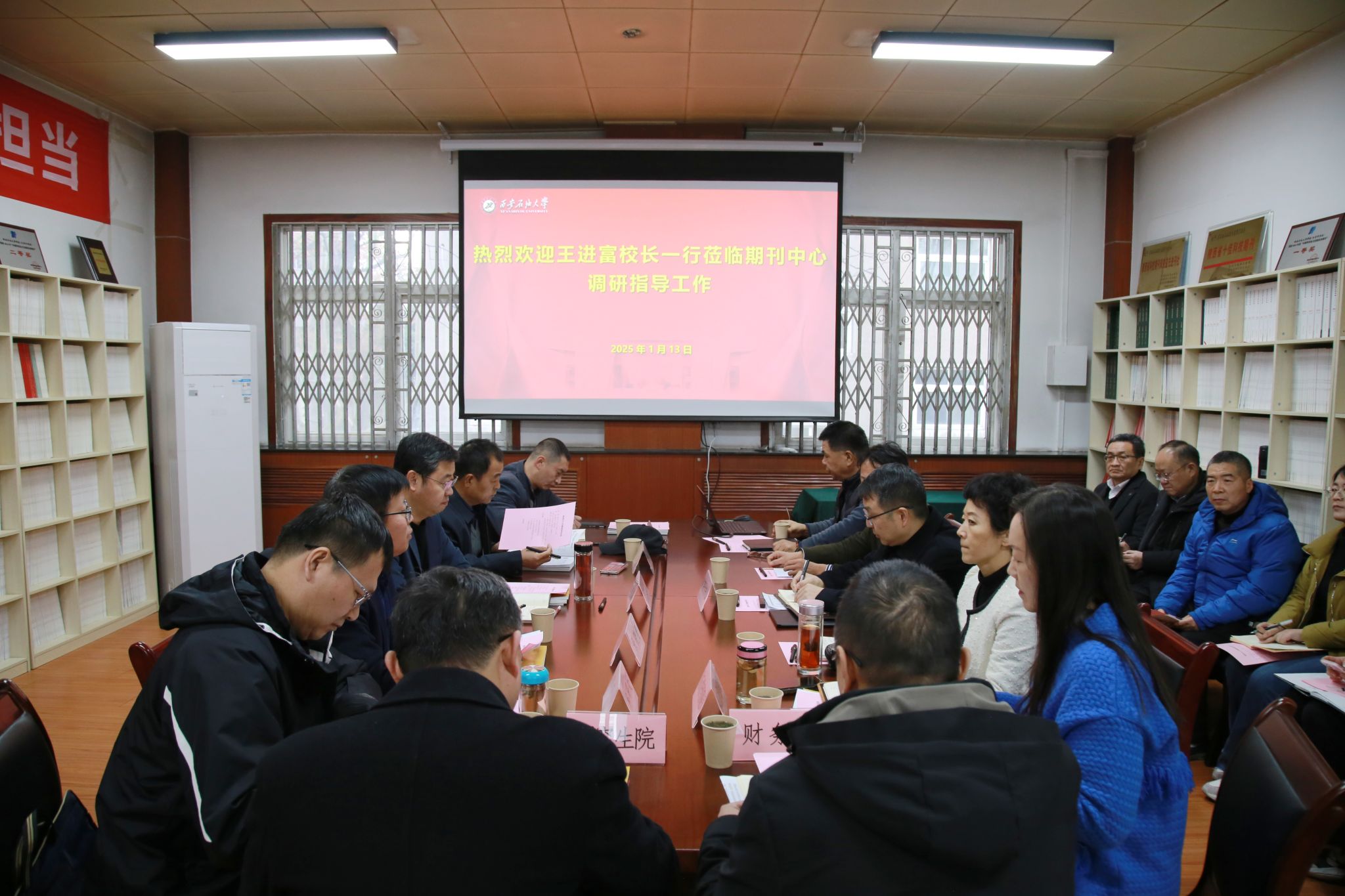 1月13日下午,校長王進富帶隊赴期刊中心進行工作調(diào)研,圍繞期刊高質(zhì)量發(fā)展開展座談交流。校黨委副書記程永清出席,副校長張驍勇主持座談會。人事處、科研處、研究生院(學科建設辦公室)、財務處、資產(chǎn)經(jīng)營公司等部門負責人及期刊中心相關人員參加上述活動。