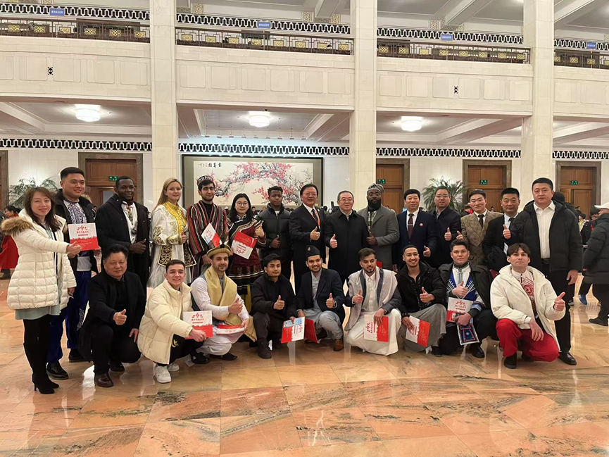 演出期間,我校國(guó)際學(xué)生身著民族傳統(tǒng)服飾,向主辦方分享了對(duì)春節(jié)申遺成功走向世界的理解和現(xiàn)場(chǎng)觀演的感受,為晚會(huì)增添了異域色彩和國(guó)際氛圍,契和了“”小年夜、大會(huì)堂、聽(tīng)民歌、著盛裝、同心節(jié)、天下緣”的演出定位,也豐富了國(guó)情教育內(nèi)容。