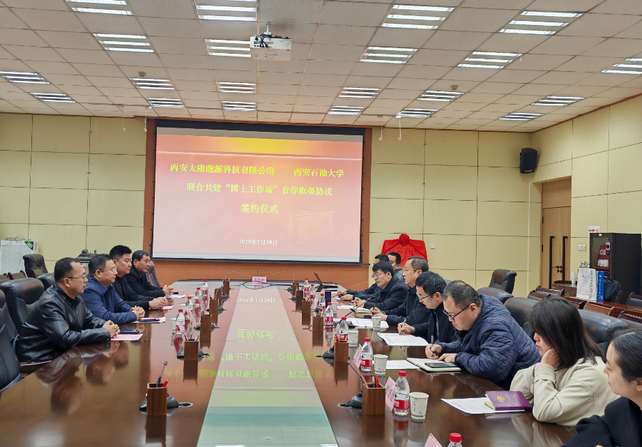 3月20日上午,西安石油大學與西安太康能源科技有限公司校企聯(lián)合共建“博士工作站”合作框架協(xié)議簽約儀式在我校雁塔校區(qū)會議中心第一會議室舉行。副校長張榮軍出席簽約儀式,西安太康能源科技有限公司總經(jīng)理程維強及有關(guān)部門負責人,科研處、研究生院負責人,化學化工學院領(lǐng)導班子成員、各系主任、現(xiàn)代分析檢測中心主任參加簽約儀式。