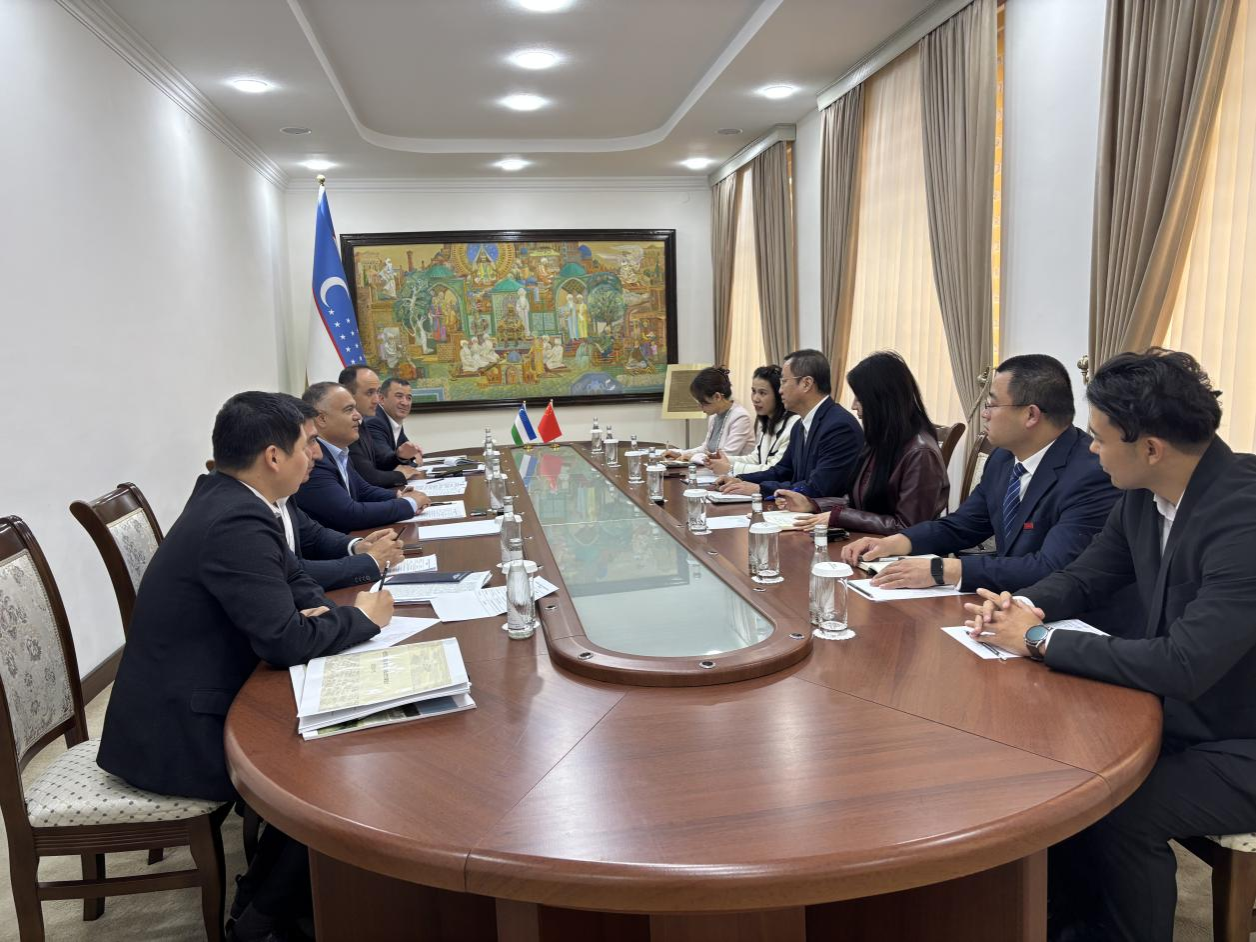 與烏茲別克斯坦教育部第一副部長達(dá)利耶夫、能源部副部長科比洛夫等會談