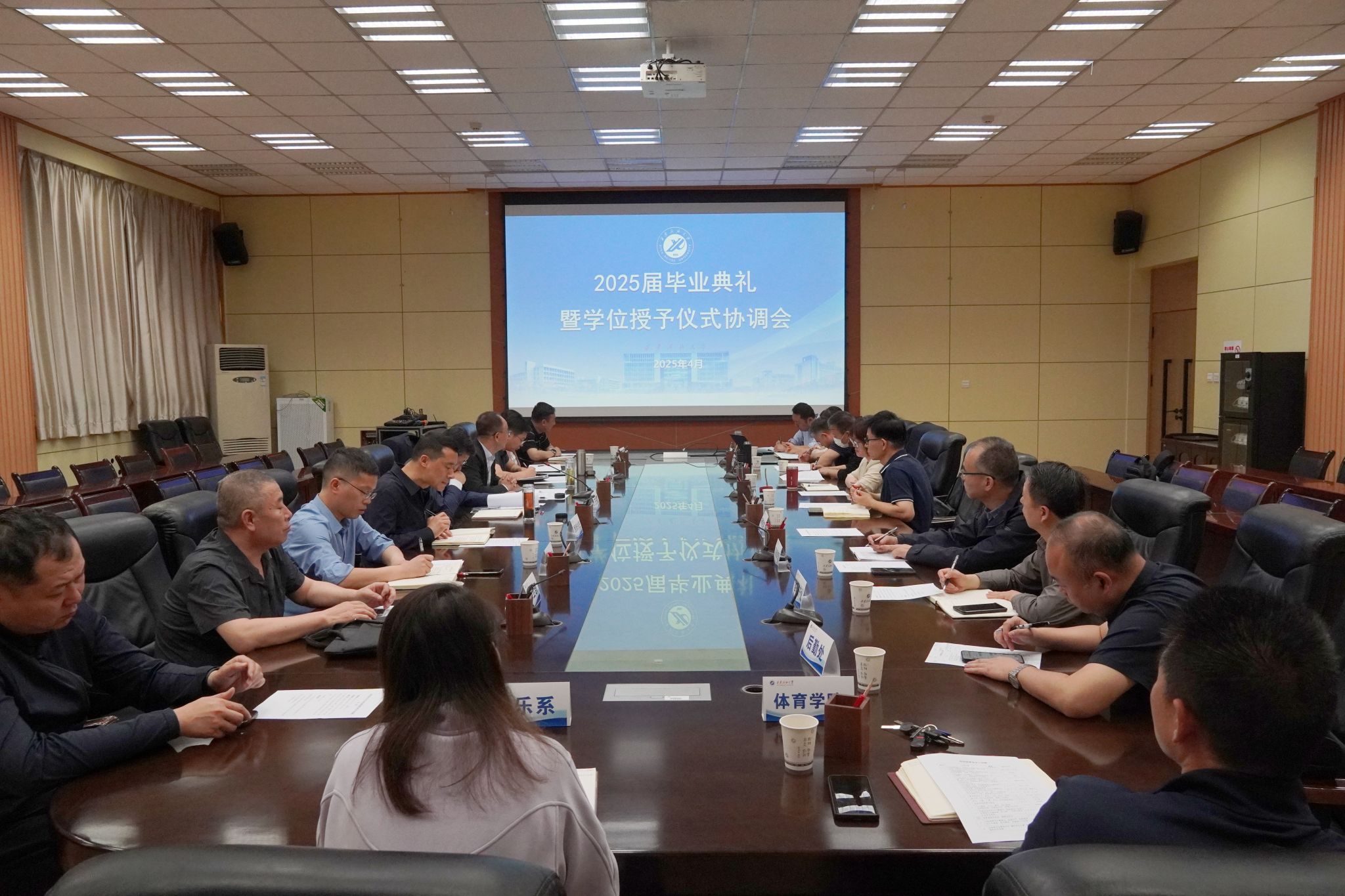 學生工作部就2025屆畢業(yè)典禮暨學位授予儀式前期準備工作進行了專題匯報。其他參會部門圍繞分工安排和相關問題進行了交流討論。