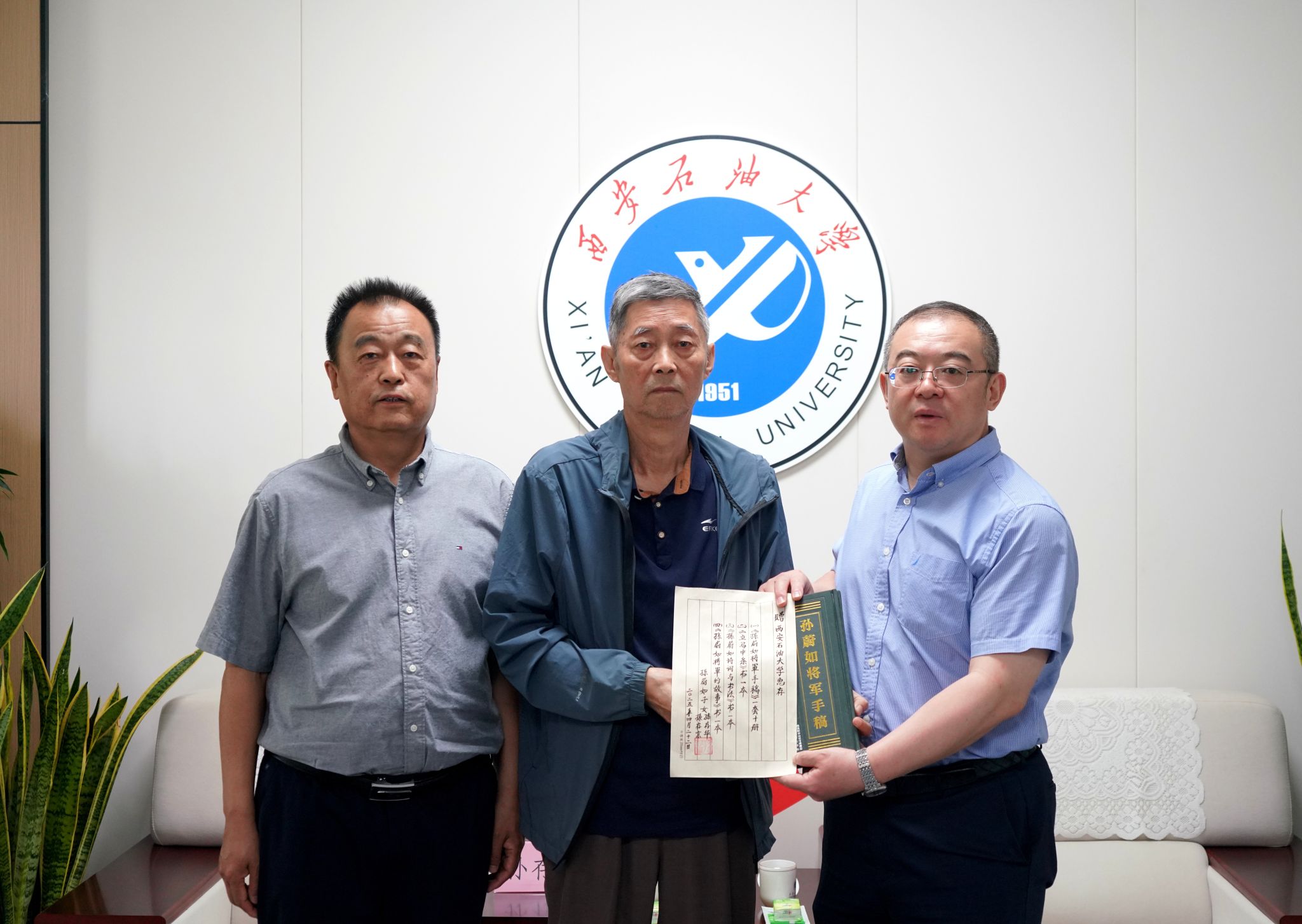 捐贈儀式上,常江代表學校接收捐贈,并對孫存京先生表示了誠摯的感謝。常江指出,西安石油大學是一所流淌著紅色血液、具有厚重紅色基因的大學,是由習仲勛等老一輩無產(chǎn)階級革命家親切關懷、倡導創(chuàng)立,最早建設、長期布局在我國西北地區(qū)的唯一一所以石油石化為特色的多科性普通高等學校。它的前身西北石油工業(yè)學校,由西北石油干部學校和陜西私立力行中學兩部分組成。陜西私立力行中學誕生于抗戰(zhàn)時期民族危亡之際,是杜斌丞先生倡導國立北平師范大學在陜同學會,為解決京、津、滬等各地學生因受抗戰(zhàn)影響相繼來陜的求學問題,合力捐薪創(chuàng)辦的一所學校,在創(chuàng)辦時期就得到了孫蔚如將軍的鼎力相助。常江表示,習近平總書記寄語全黨,不管走多遠,都不能忘記我們來時的路。值此抗戰(zhàn)勝利80周年之際,孫將軍作為陜籍抗日名將和陜西人的驕傲,我們非常榮幸獲贈他的手稿等珍貴書籍,這不僅豐富了學校檔案館館藏,更為學校研究陜軍抗戰(zhàn)歷史、開展愛國主義教育提供了最真實的資料和生動教材。
