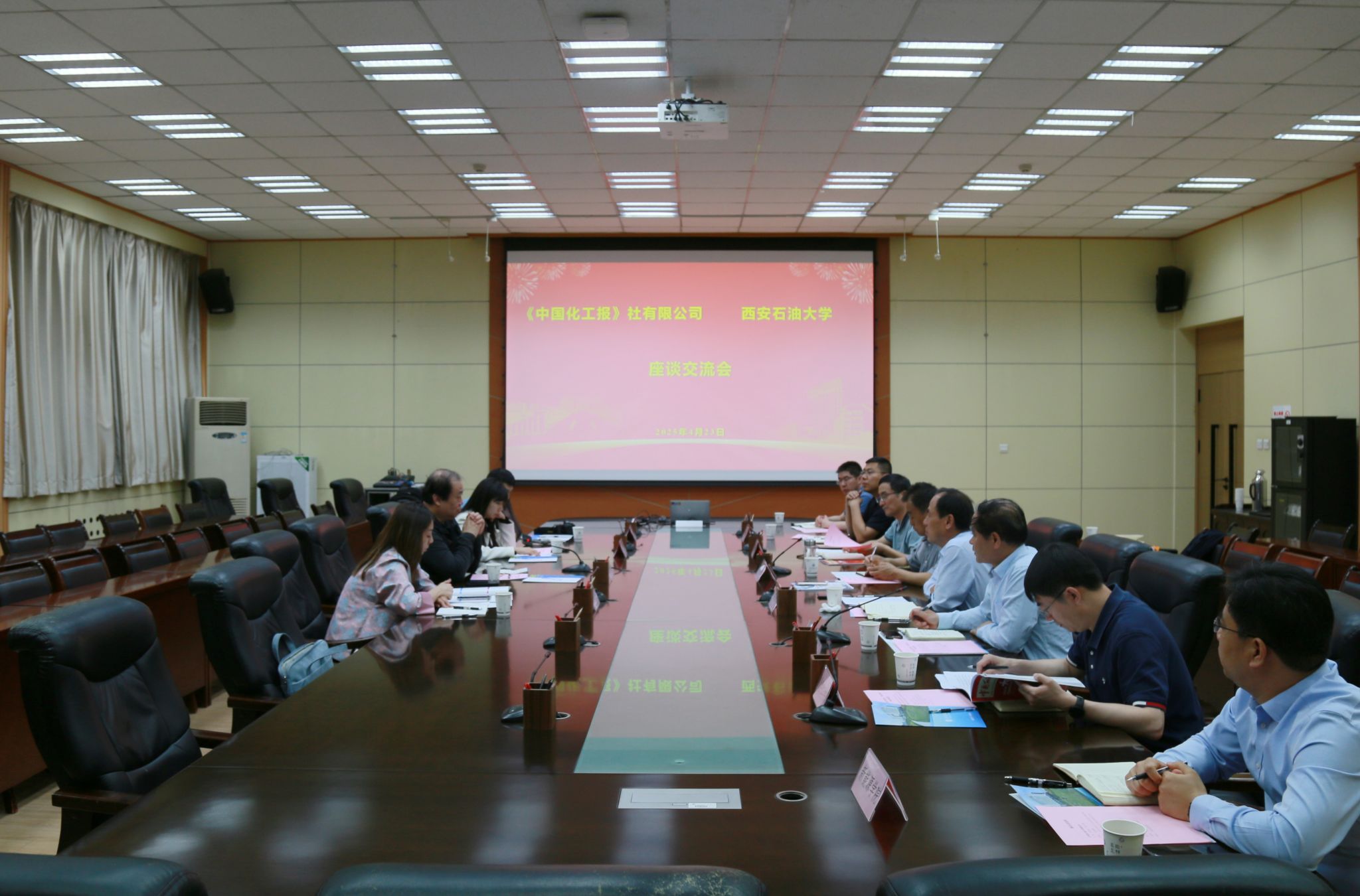 《中國化工報》社有限公司副總編輯劉雅文、《中國石油和化工》雜志社有限公司新聞總監(jiān)楊曉宇、《中國石油和化工》雜志社有限公司記者王京堯;我校黨委委員、宣傳部部長趙承勝以及科研處、校友工作與合作交流處、石油工程學(xué)院、化學(xué)化工學(xué)院、材料科學(xué)與工程學(xué)院、新能源學(xué)院負(fù)責(zé)同志參加座談。