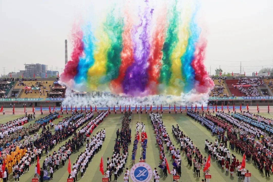 校黨委書記常江宣布:“西安石油大學(xué)第四十四屆田徑運(yùn)動(dòng)會(huì)開(kāi)幕!”霎時(shí),煙花漫天、掌聲四起、歡聲如雷。